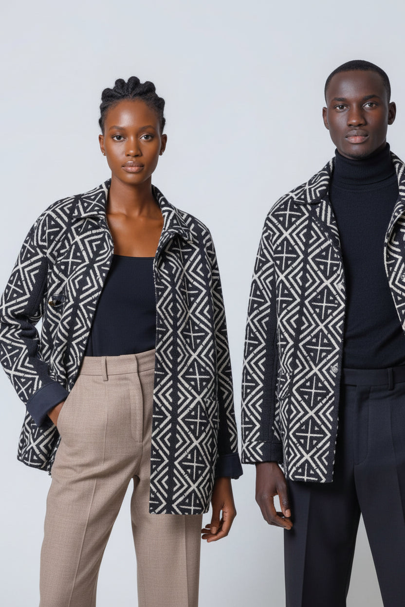 Blazer homme en pagne africain Sénoufo – coton tissé main
