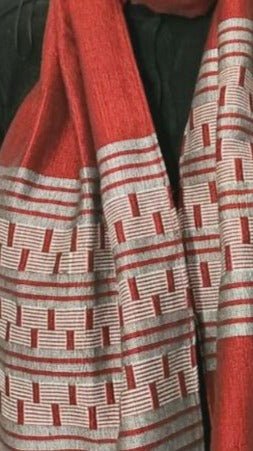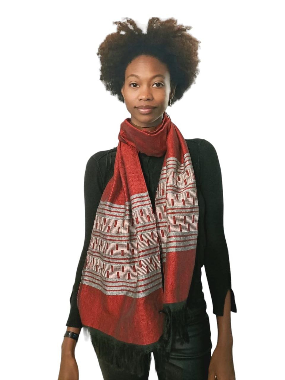 Écharpe rouge en pagne tissé Manjak (Sëru Rabel) – coton artisanal