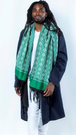 Étole en Pagne Manjak Vert Mixte – Version « de luxe » Édition Très Limitée