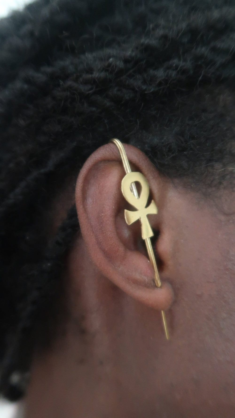 Laissez-vous séduire par nos magnifiques boucles d'oreilles Ankh Traverse Mixte en bronze, une pièce unique et originale fabriquée à la main par des artisans bijoutiers en Afrique.