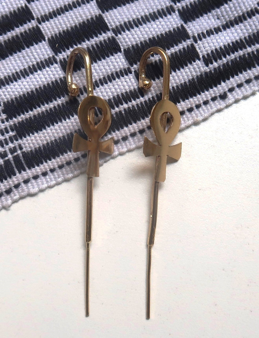 Boucles d'Oreilles Ankh Traverse Mixte en Bronze – Artisanat Africain Haut de Gamme