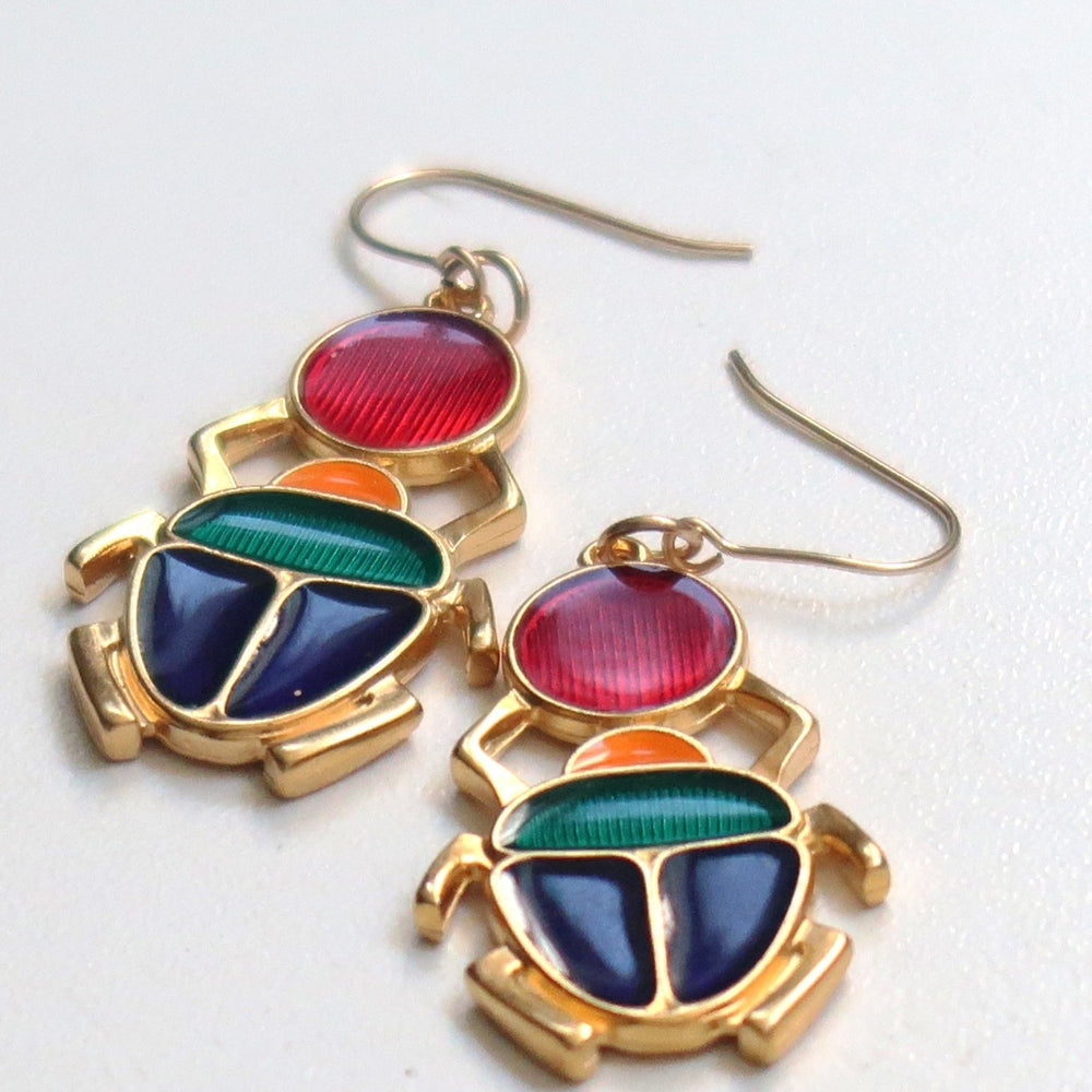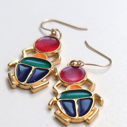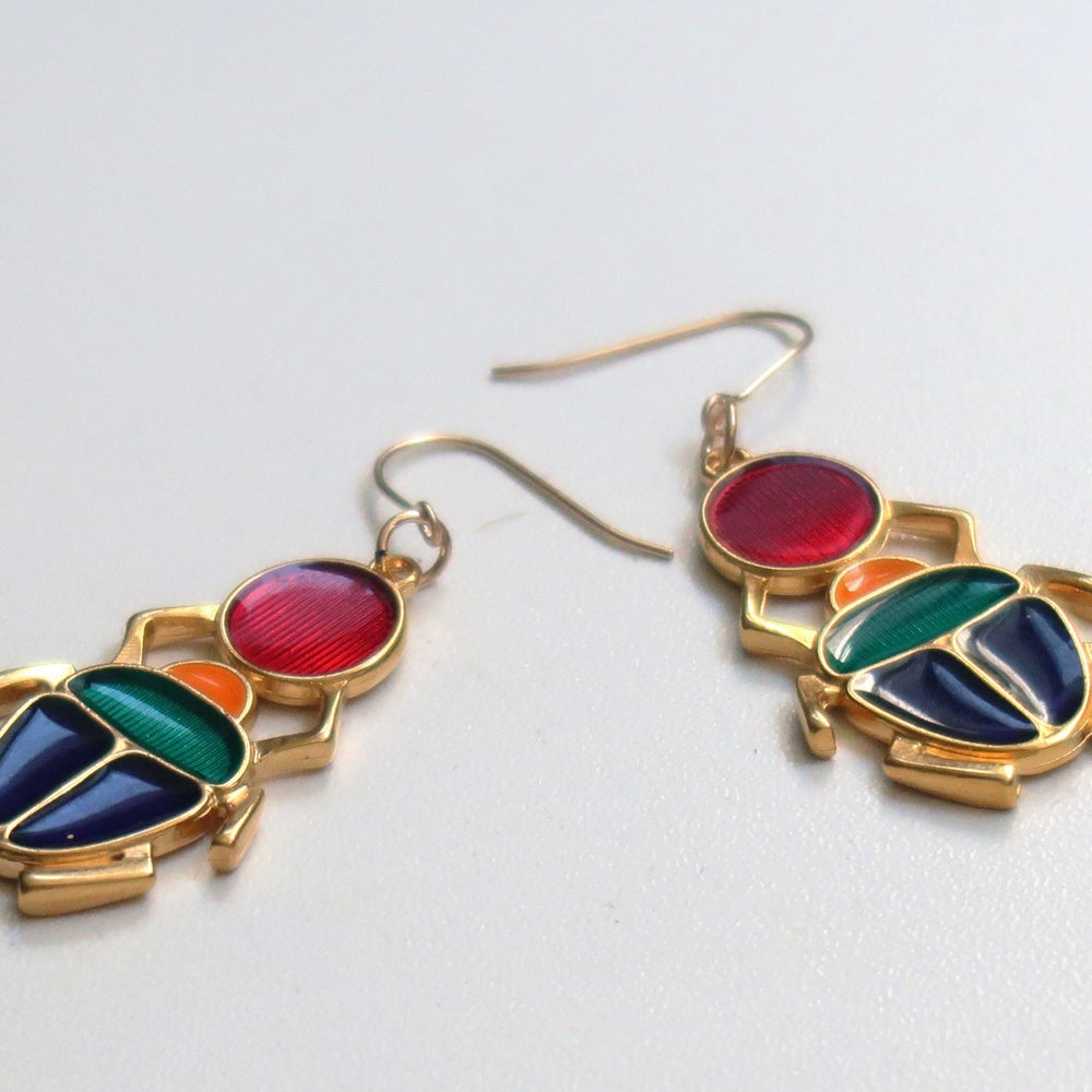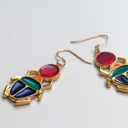 Découvrez nos boucles d'oreilles KHEPER aux couleurs vibrantes, montées sur des attaches en Gold Filled 14 K pour une collection anti-allergie. Chaque pièce présente l'élément Kheper en Zamak, offrant élégance et confort.