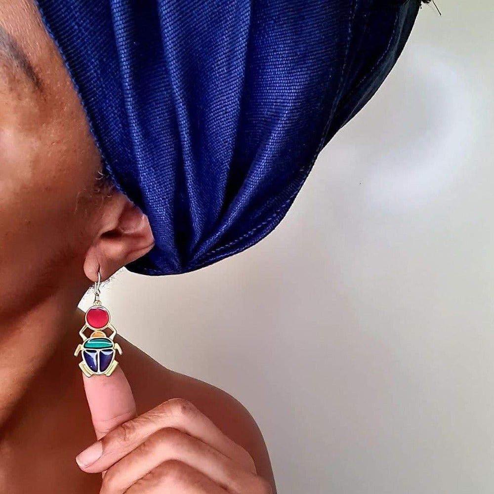 Plongez dans l'héritage symbolique avec nos boucles d'oreilles KHEPER en Zamak, une fusion entre l'histoire africaine et l'élégance contemporaine.