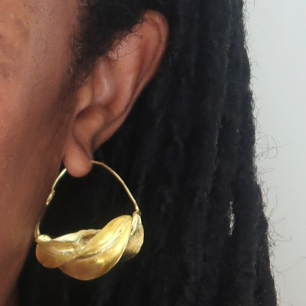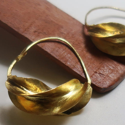 Chaque paire est martelée manuellement ; de légères variations signent l’ouvrage. Le bronze massif (feuilles de bronze) (alliage cuivre/étain) est une matière noble qui développe une patine élégante avec le temps — bien plus durable que le plaqué ou le simple laiton. Boucles ultra légères.