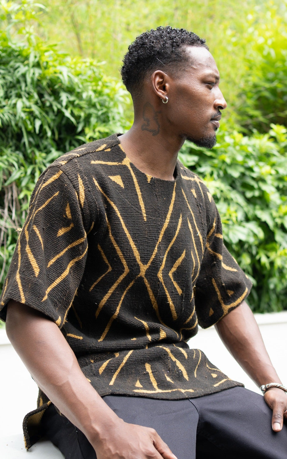 La Tunique Anango Homme à manches courtes fait partie des must du dressing masculin. Alliant tradition textile Africaine et modernité, elle est composée d'une matière luxueuse et royale qui lui donne un tombé impeccable : Le Bogolan du Mali tissé et teint à la main