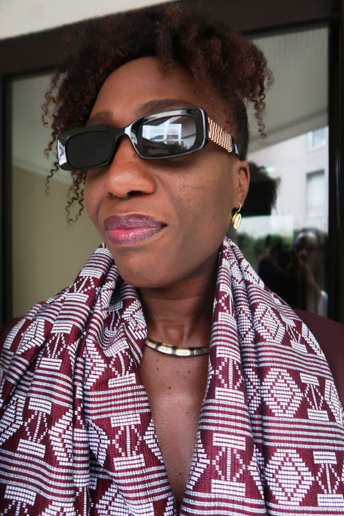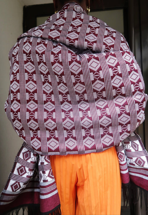 Écharpe-Étole Manjak de Luxe bordeaux — pagne tissé africain 100 % coton