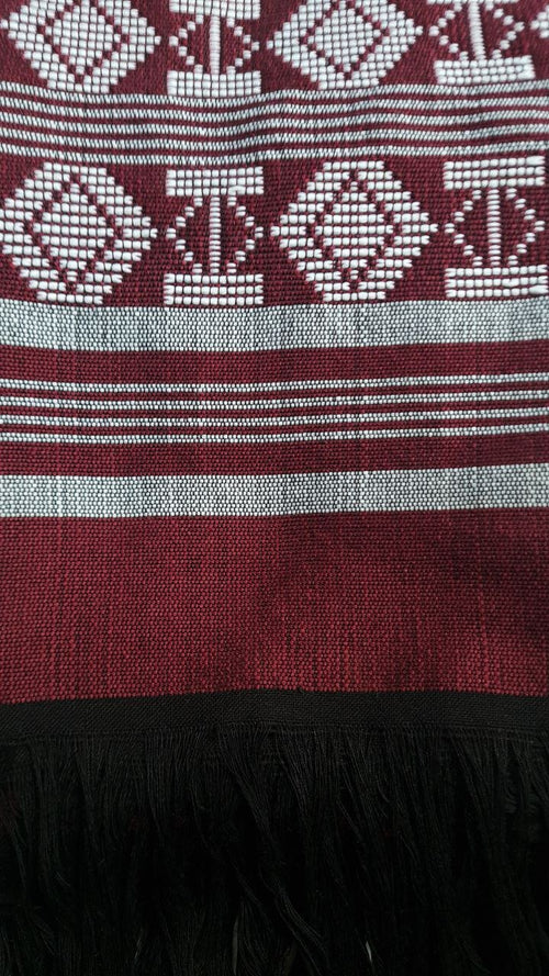 Tissée à la main sur métier traditionnel, cette écharpe-étole Manjak de Luxe se distingue par la finesse de son tissage et la richesse de sa teinte bordeaux profonde. Chaque fil est travaillé avec rigueur par des tisserands manjak, établis entre la Casamance et la Guinée-Bissau — un geste patient hérité des anciens maîtres du fil.