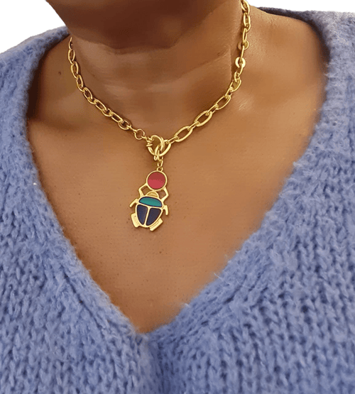 - Pendentif : zamak émaillé artisanalement (scarabée KHEPER)