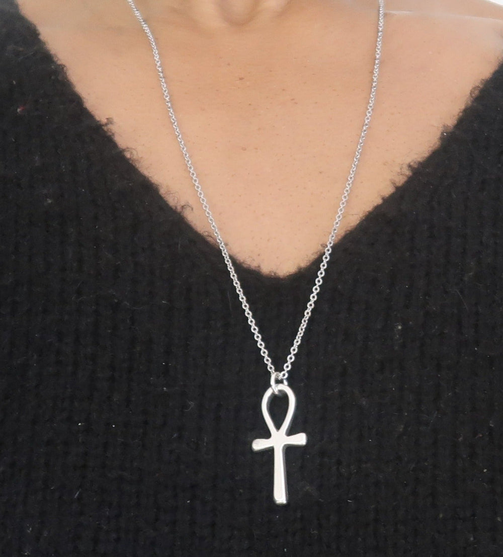 Collier Ankh Unisexe Argenté — Pendentif en Zamak & Chaîne en Acier Inoxydable