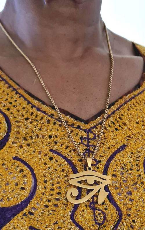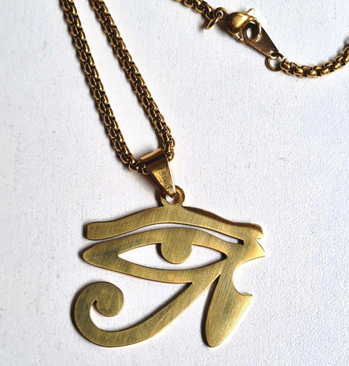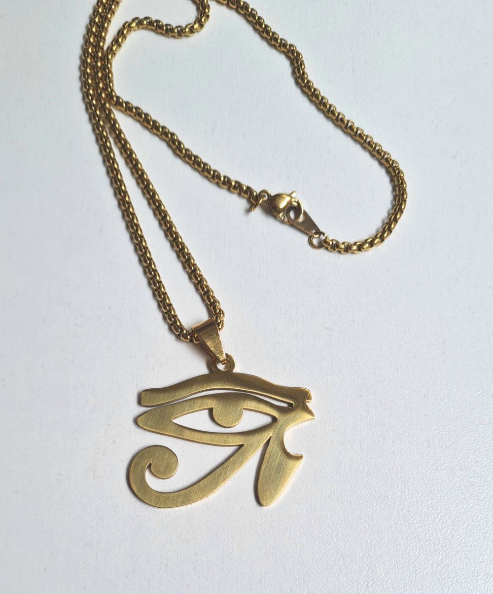 Ce collier mixte en acier inoxydable représente l’Œil d’Horus, aussi appelé Oudjat : un puissant symbole de protection venu d’Egypte Ancienne. Il incarne la clairvoyance, la santé et la force spirituelle. Un bijou chargé de sens, à la croisée du style et de l'héritage.