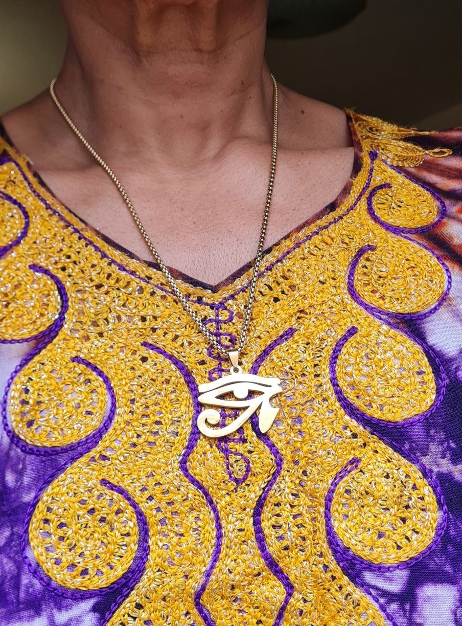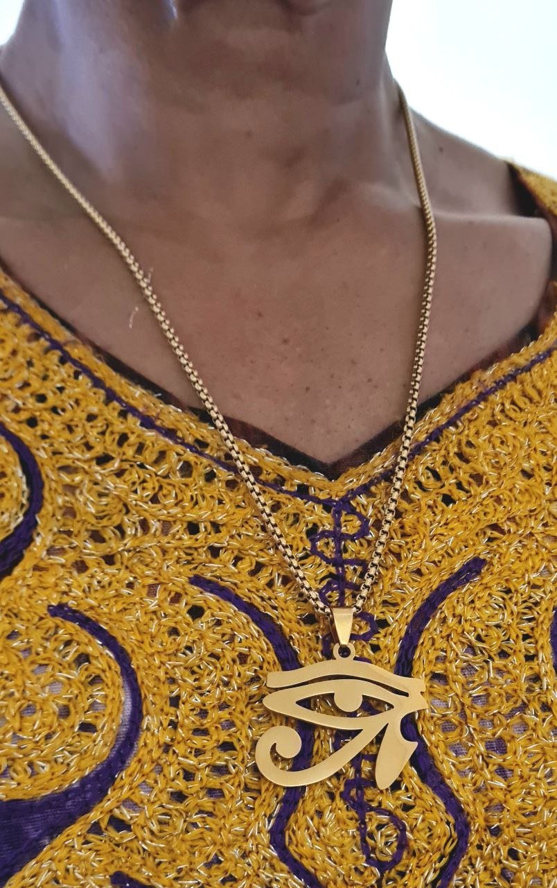 Collier Œil d’Horus « Oudjat » en Acier Inoxydable – Protection & Puissance Ancestrale