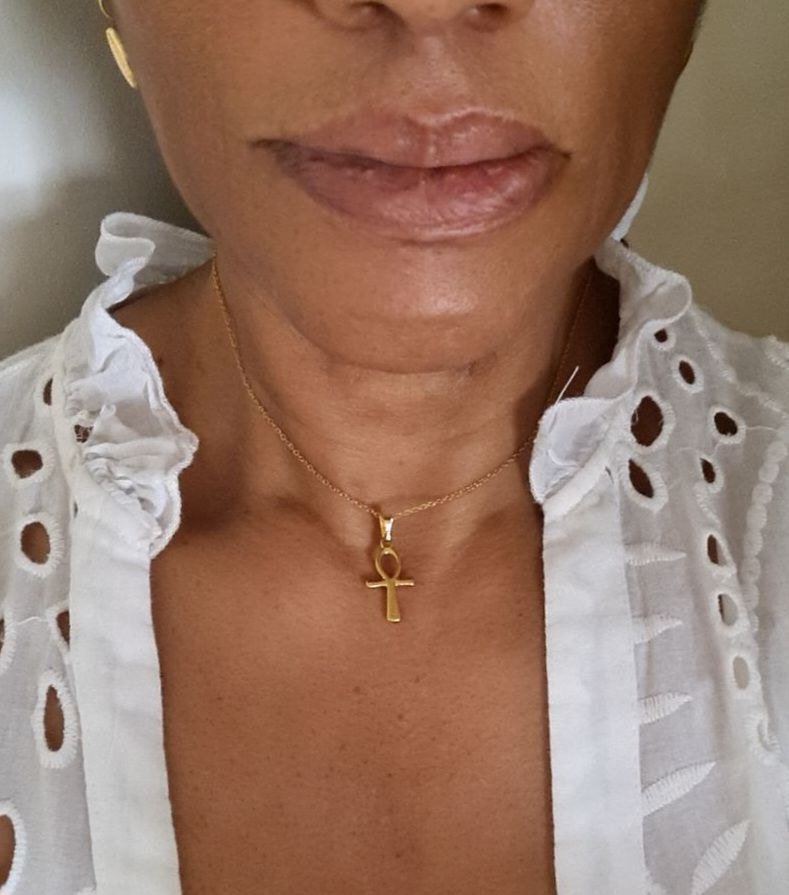 En son centre, le pendentif Ankh de 2 cm, délicatement façonné, attire l’œil sans jamais dominer.