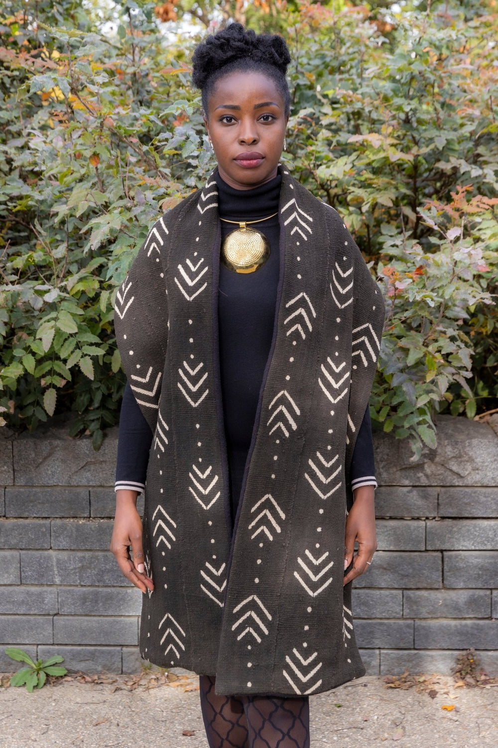 Grande écharpe africaine en bogolan tissé main (Mali), doublée d’une polaire douce et chaude. Ses dimensions généreuses 40 × 240 cm en font une pièce mixte, confortable et enveloppante, idéale pour l’hiver comme pour la mi-saison.