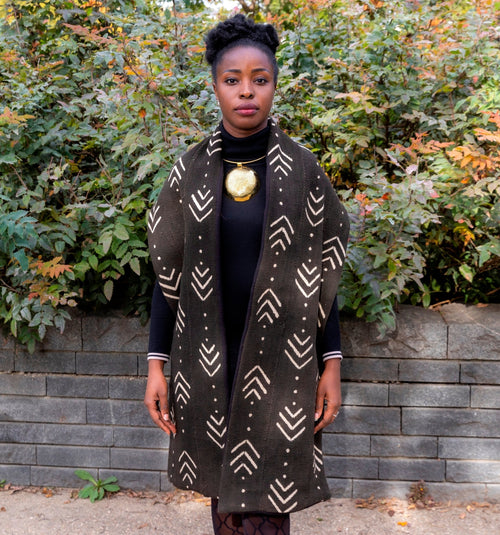 Associez-la avec nos pièces coordonnées en bogolan : manteau bogolan (modèle 1), manteau bogolan (modèle 2), chemise bi-matière bogolan & coton, caftan en bogolan, tunique bogolan, veste bogolan.